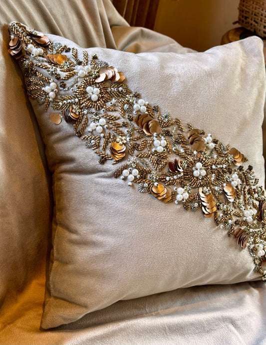 The Ivory Beaded Cushion Cover