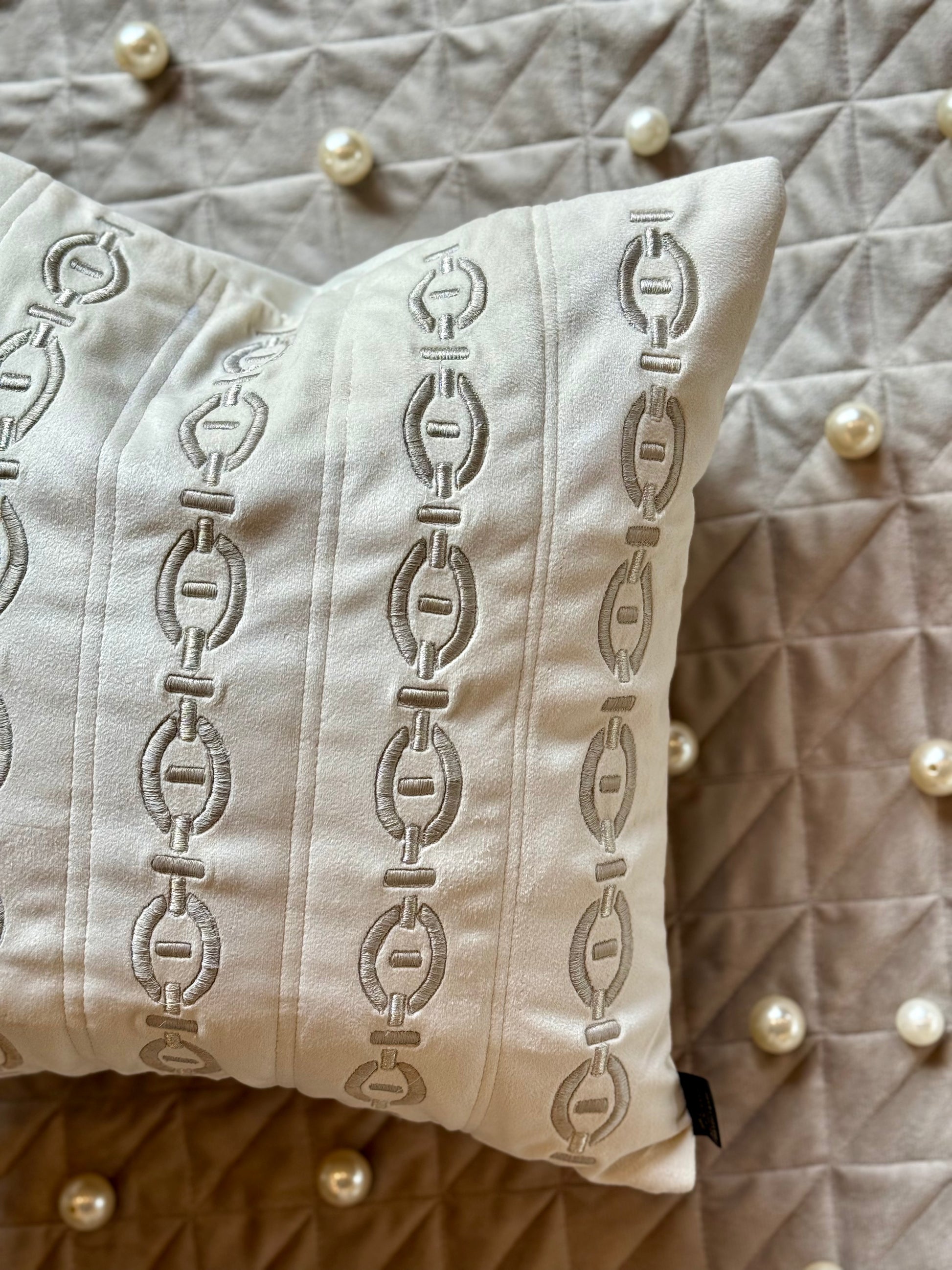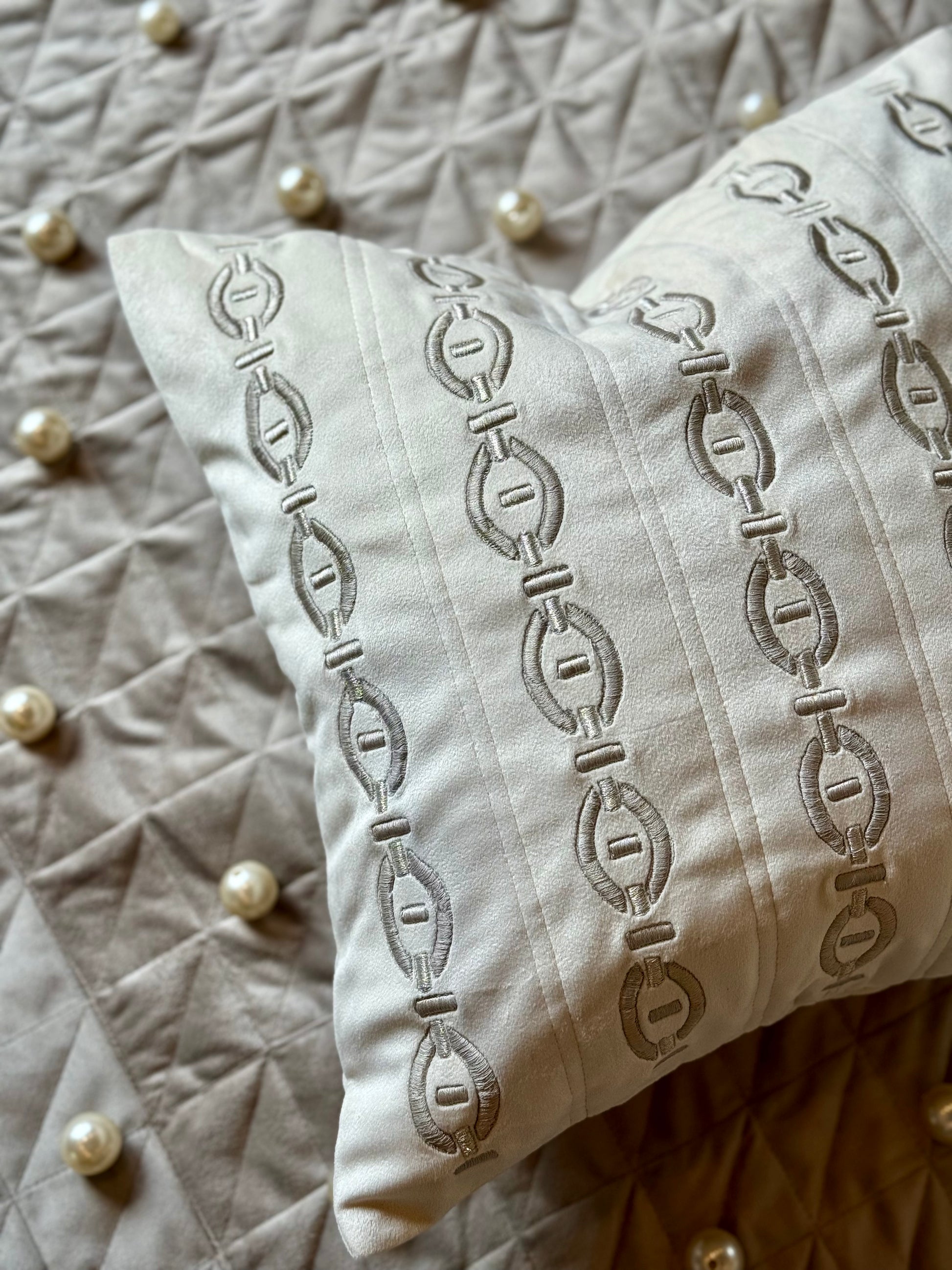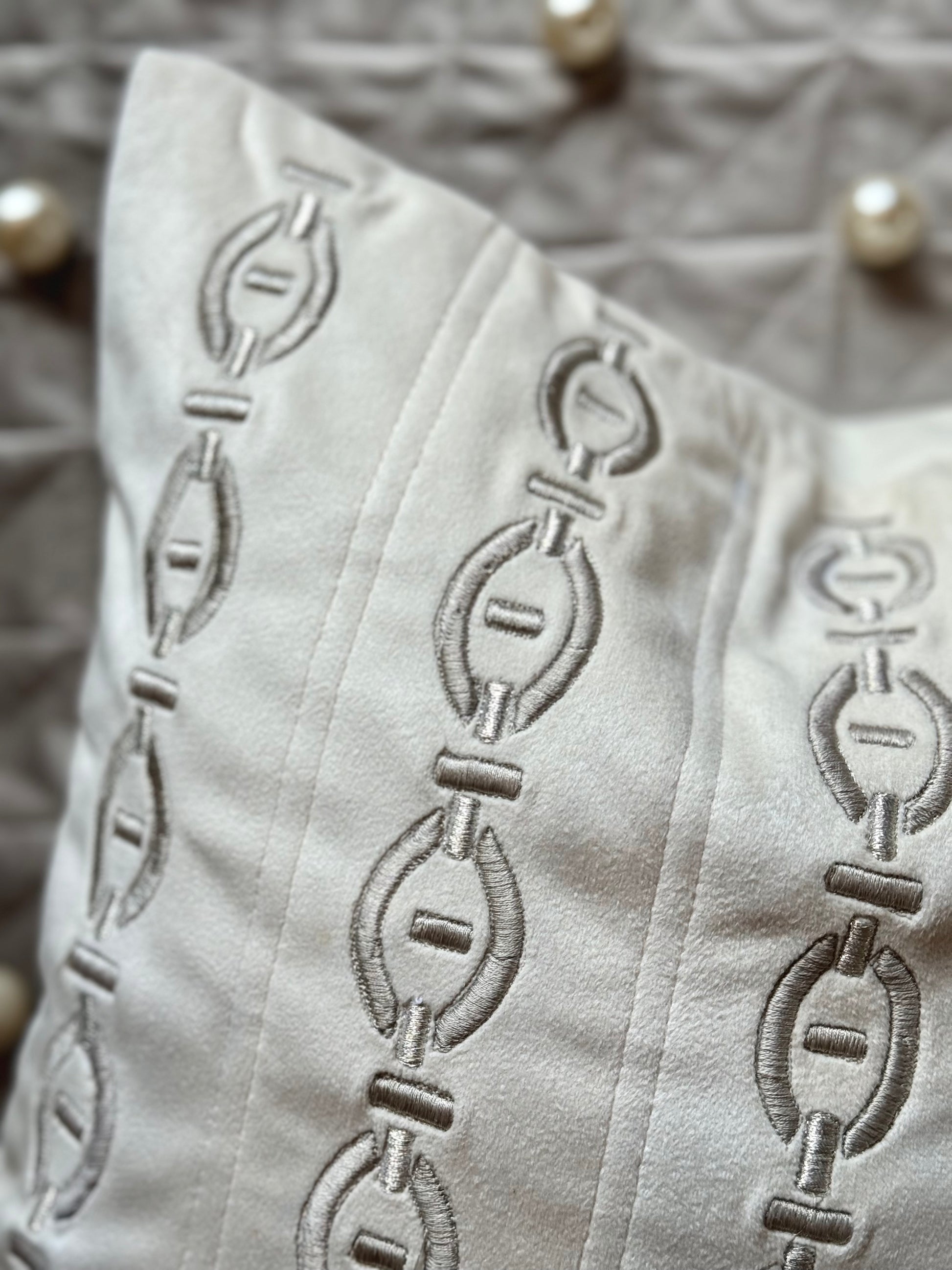 Indulge in luxury with THE ARNOLD CUSHION COVER. Crafted with modern embroidery, this soft and elegant cover will add a touch of sophistication to your home. Perfect for those seeking a stylish and comfortable living space.