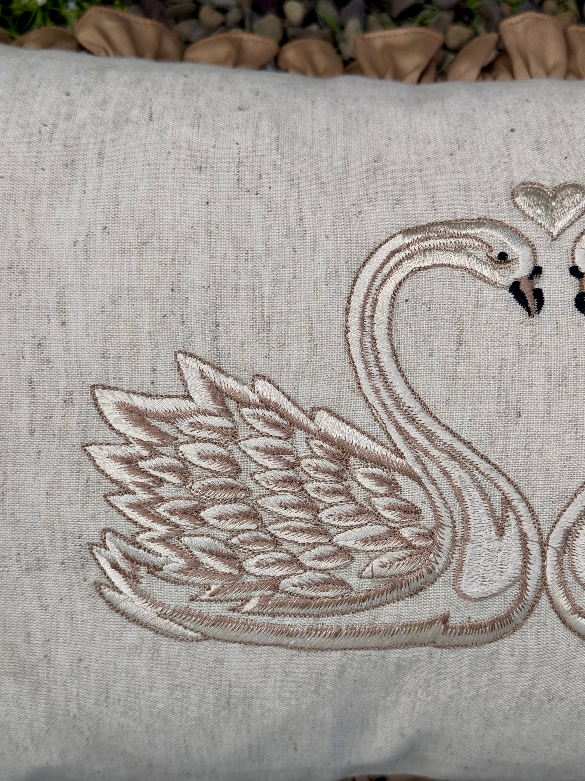 Add style and comfort to your home with the Beige Swan Lumbar pillow. Its elegant design and perfect beige tone will complement any decor, giving it a luxurious and sophisticated touch. This subtle addition is sure to elevate your living space. Includes insert for added convenience.