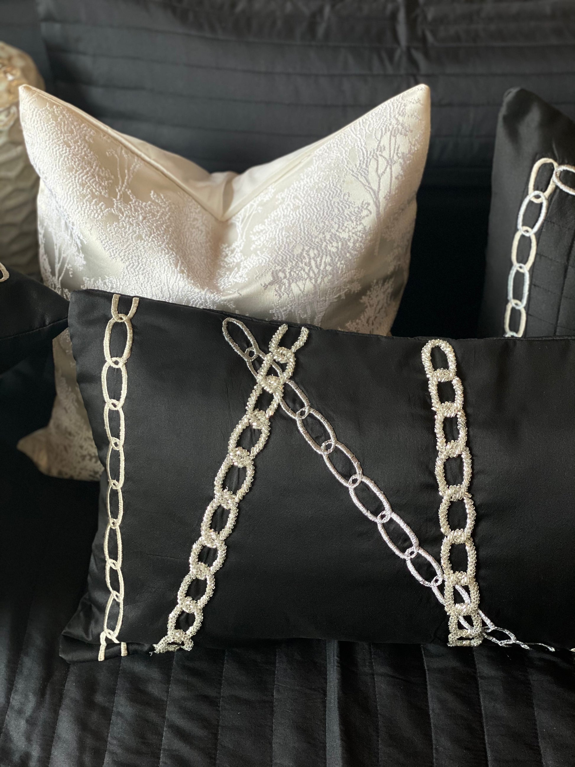 Style your homes with luxury & elegance with our contemporary BLACK SEPHORA bedding set✨ Soft embroidery on the cushion covers & delicate hand embroidery on the spine cover make your bedrooms look lavish as ever💫