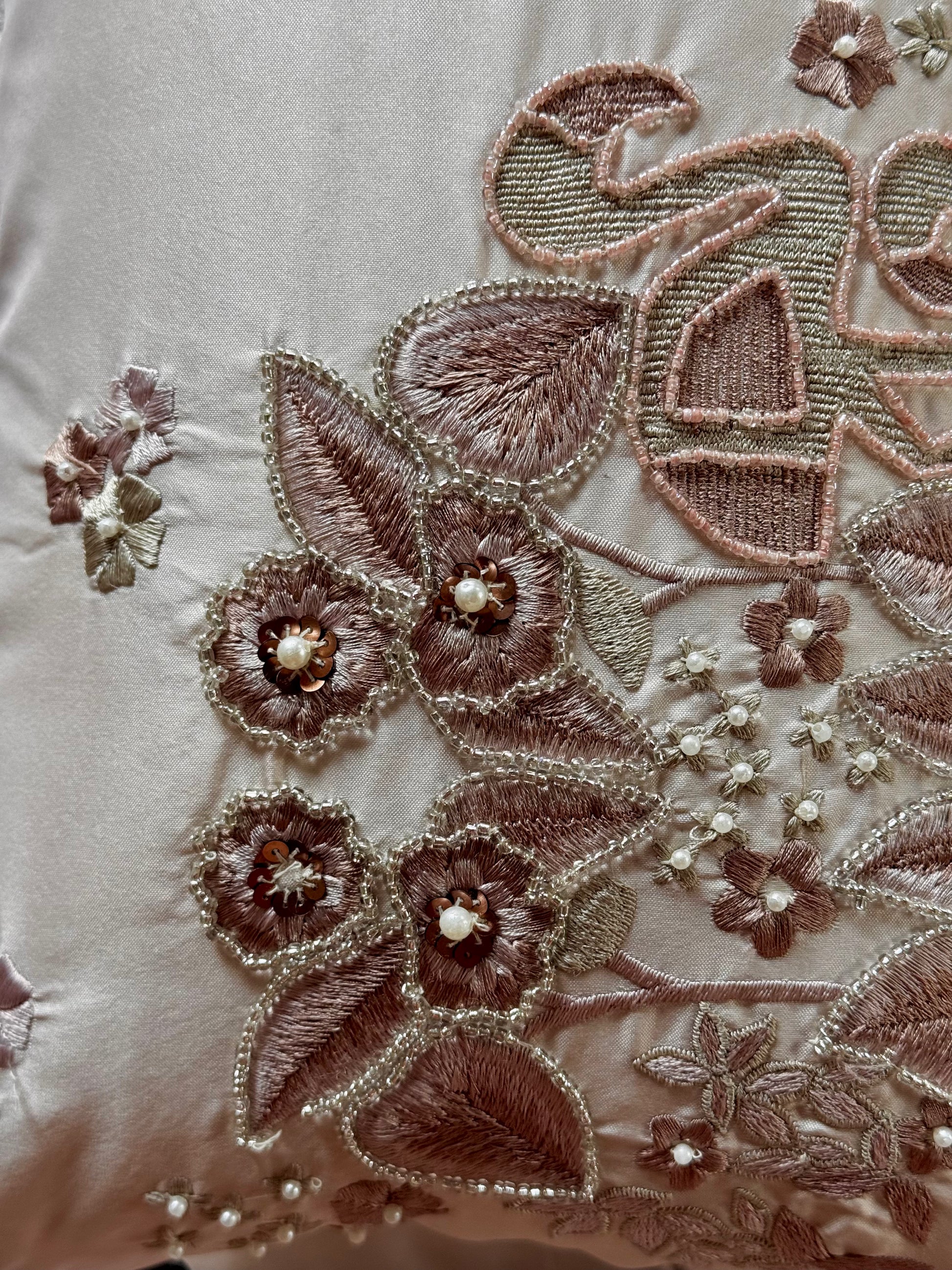 Grace your space with the serene charm of our Blush Flamingo Lumbar. Crafted in the softest blush hue, this exquisite piece features intricate hand embroidery that captures the elegance of Flamingos in motion. A perfect blend of artistry and sophistication, it adds a touch of timeless beauty to your bedding or living space.