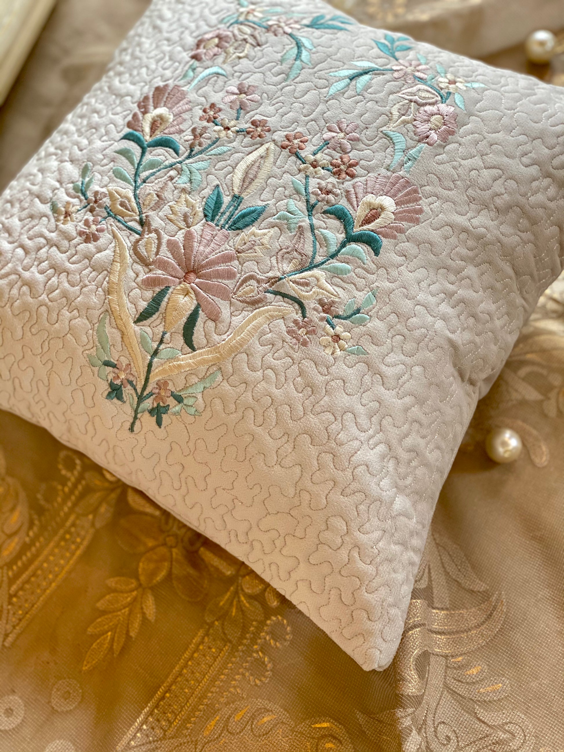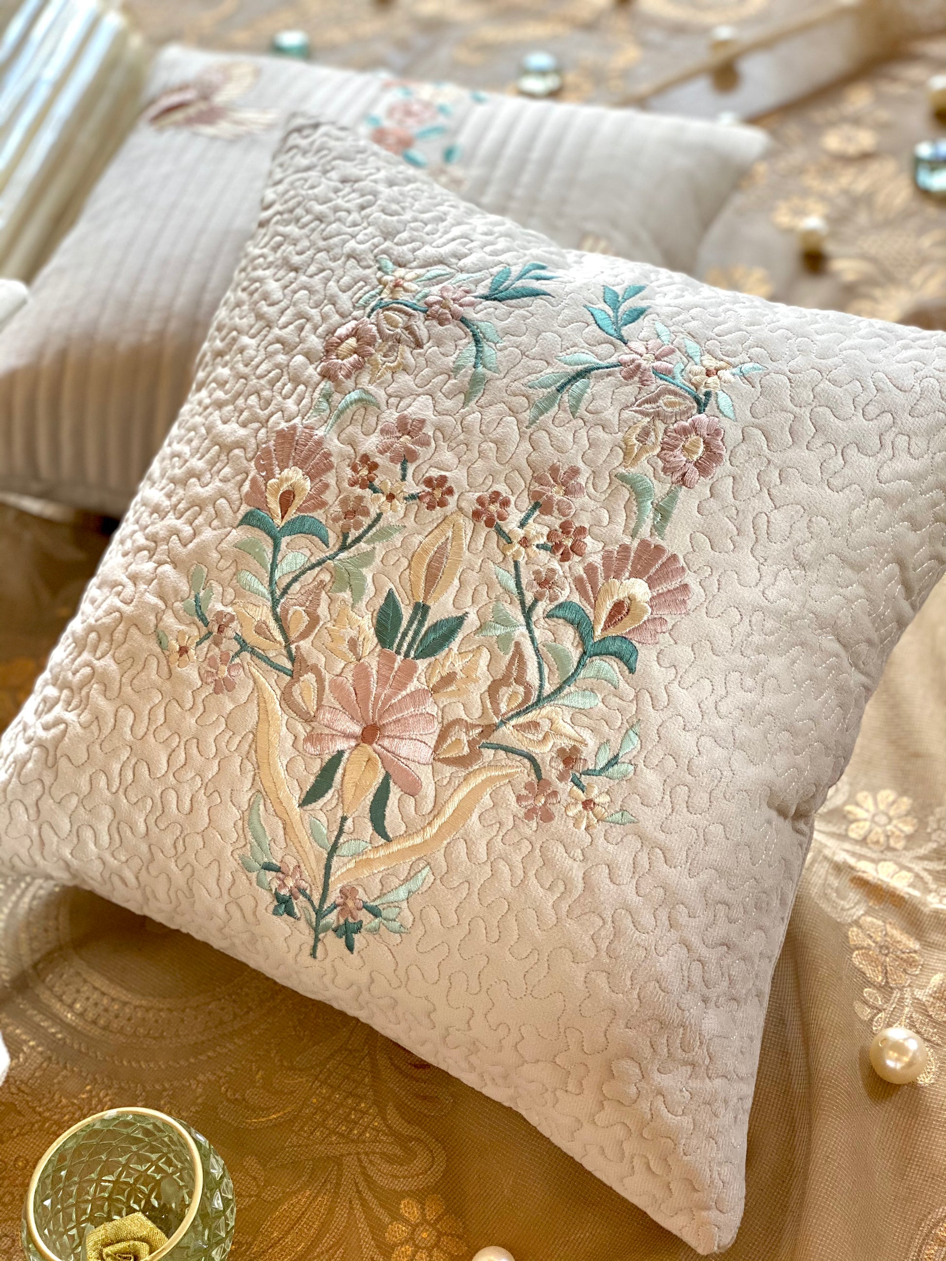 Introducing THE COCOON CUSHION COVER, crafted from luxurious suede and featuring exquisite embroidery. Enjoy enhanced comfort and style with its elegant accents, perfect for adding a touch of sophistication to any room.