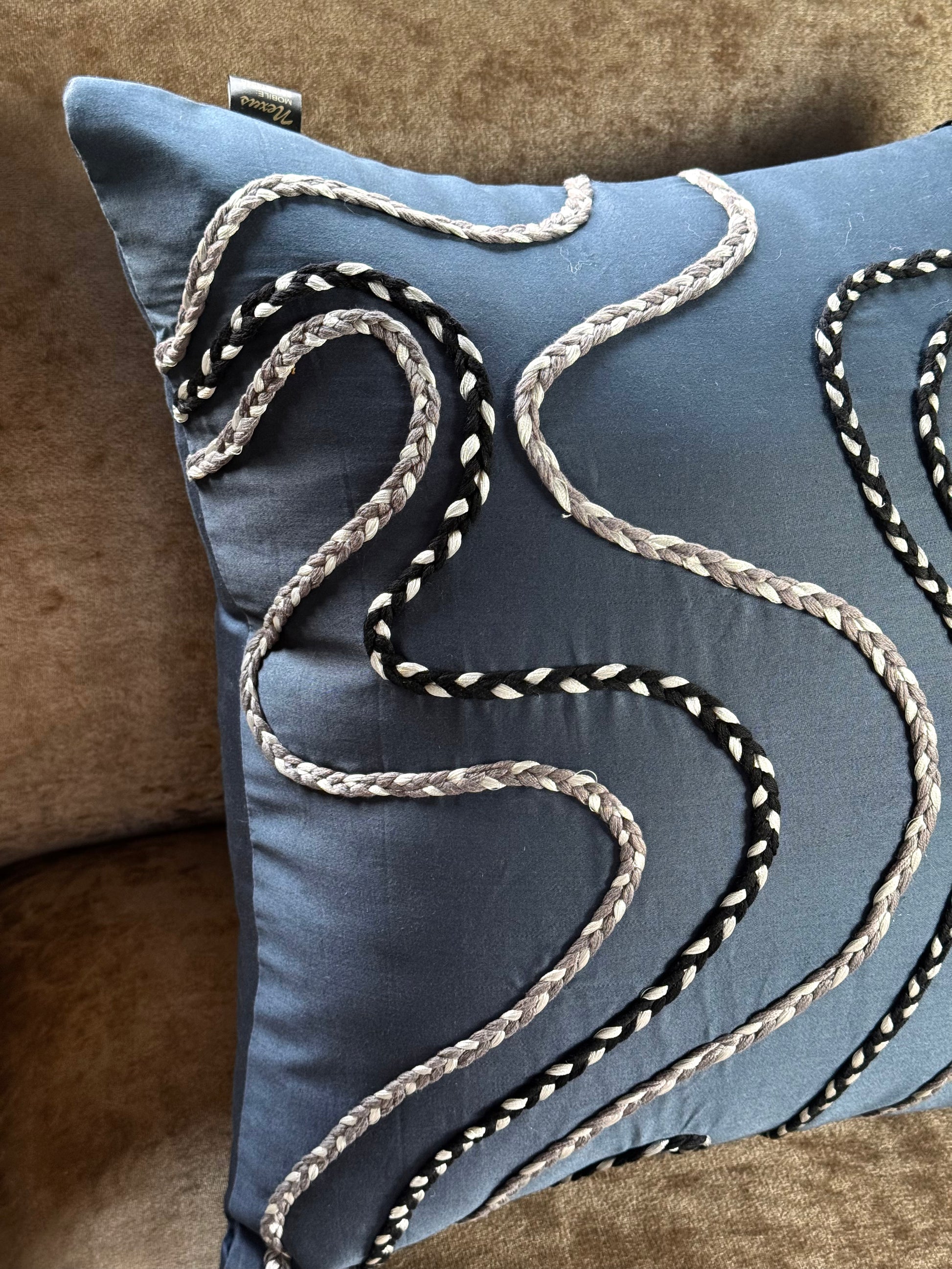 The Sandstone Cushion Cover brings together contemporary design and artisanal craftsmanship. This elegant piece features abstract patterns enhanced by intricate anchor hand work, creating visual depth and texture. The sophisticated blue-grey palette complements any interior while the handcrafted details add a touch of luxury. Ideal for those seeking to balance modern aesthetics, this cushion cover transforms your space into a curated sanctuary. A versatile accent that elevates both minimalist and eclectic décor schemes.