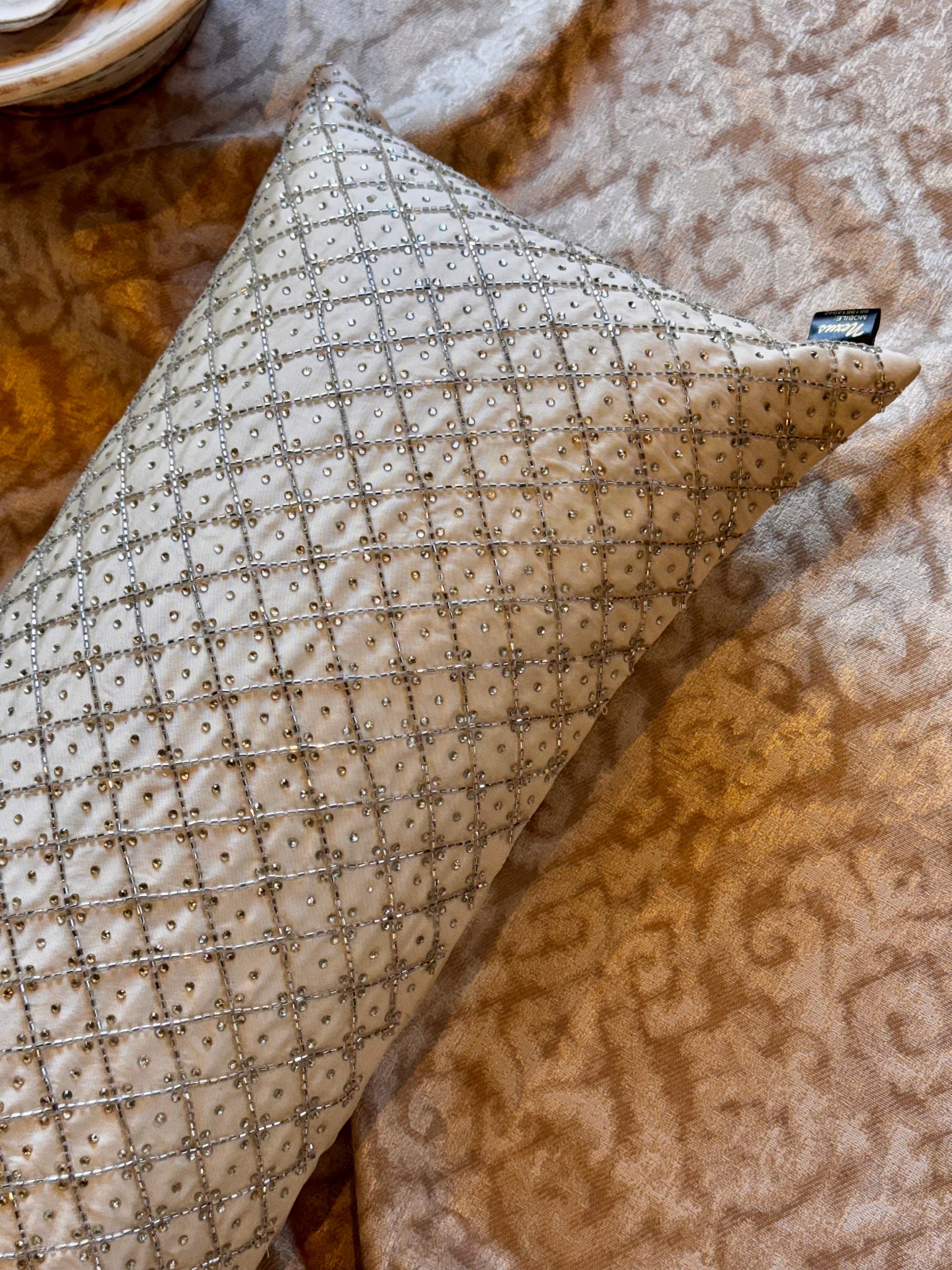 Elegant & modern, this hand embroidered lumbar is sure to bring a touch of luxury to your homes!