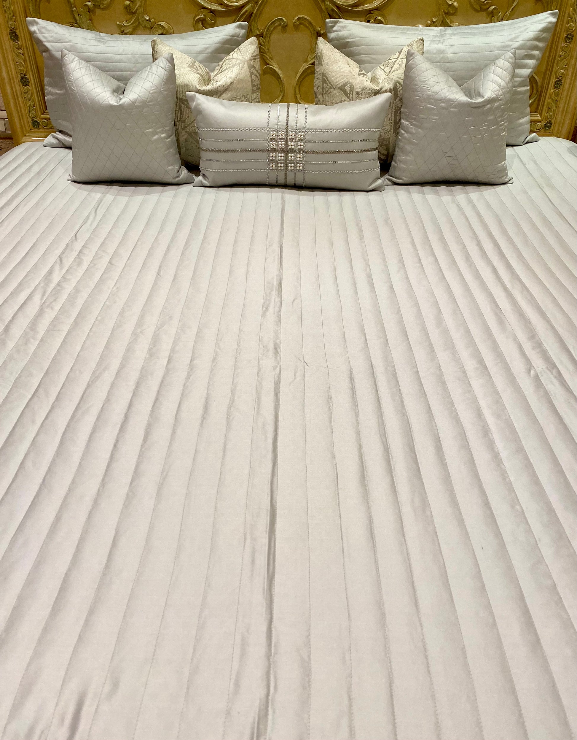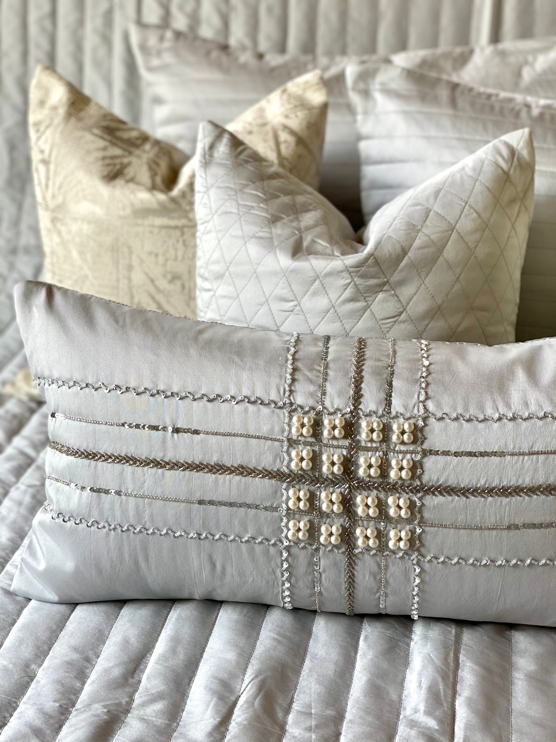 An exquisite soft grey paired with off white highlights to give your bedrooms a modern & luxurious look✨ Elegant hand embroidery on the spine gives a wholesome look to the whole set!