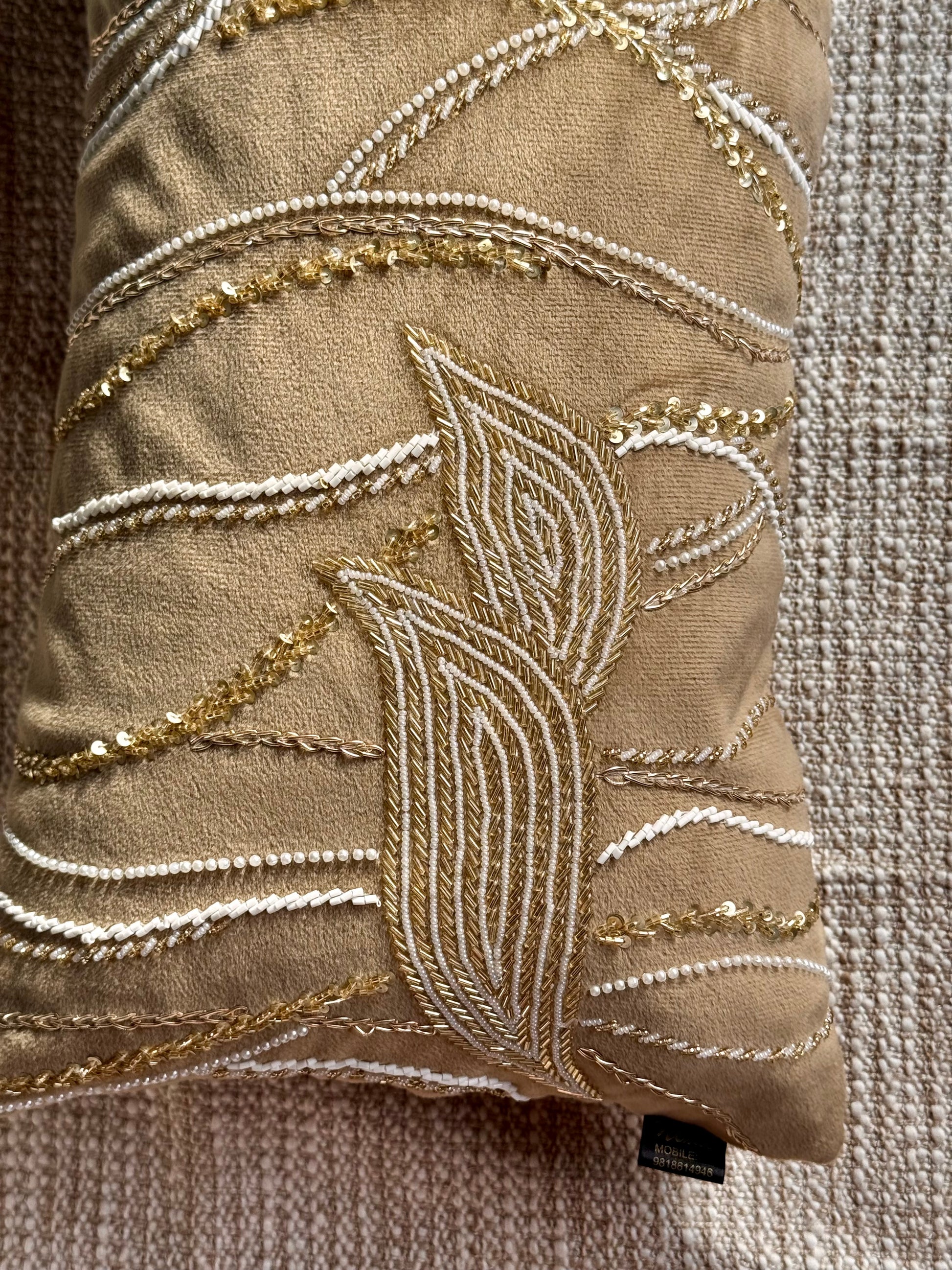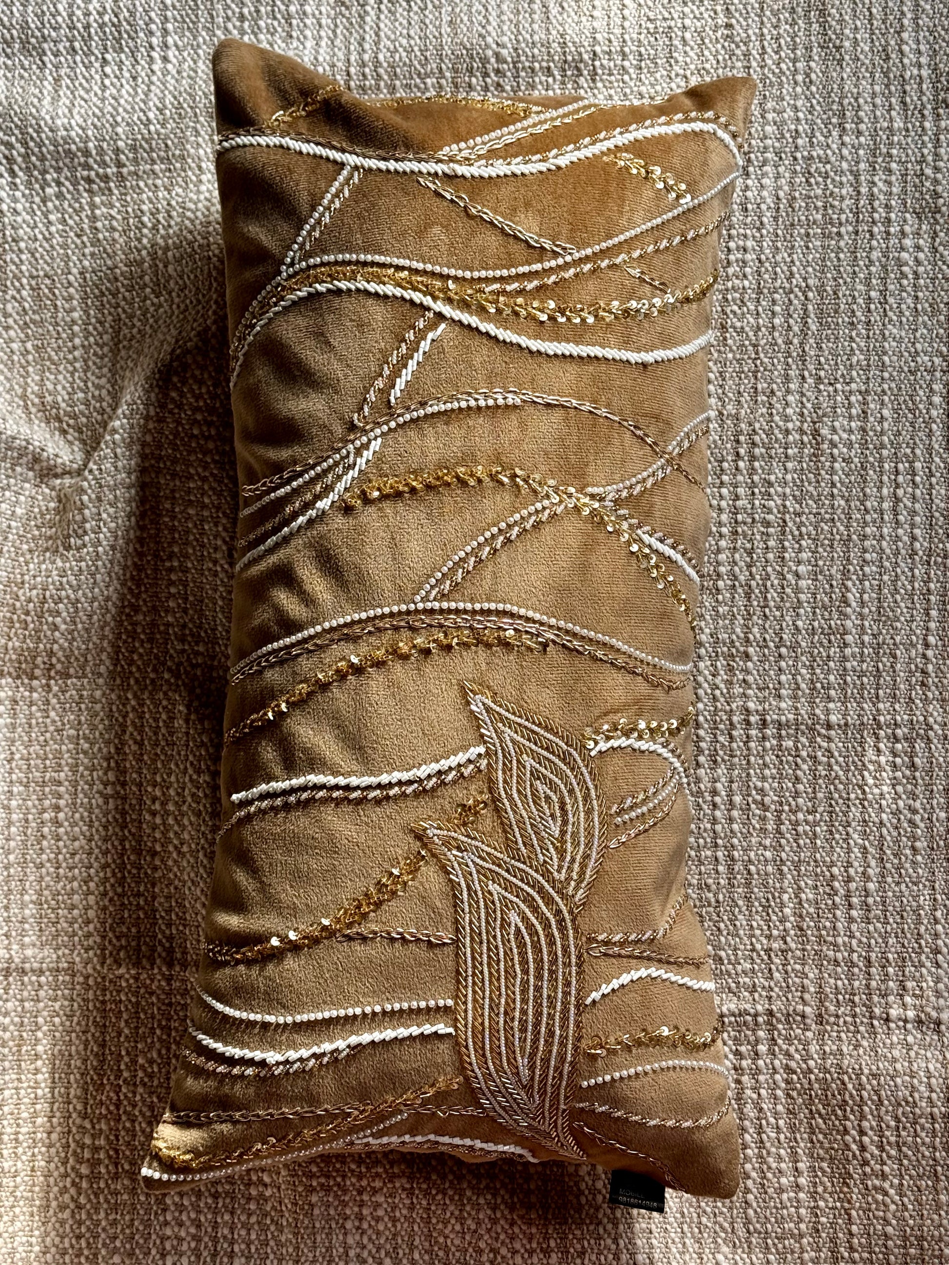An exquisite statement piece, the Gold Maze Lumbar Cushion Cover is designed to bring warmth and grandeur to your interiors. Featuring intricate hand embroidery in gold and ivory tones that flow across a plush base, it evokes the elegance of gilded pathways. Perfect for adding sophistication and depth to sofas, armchairs, or bedding ensembles.