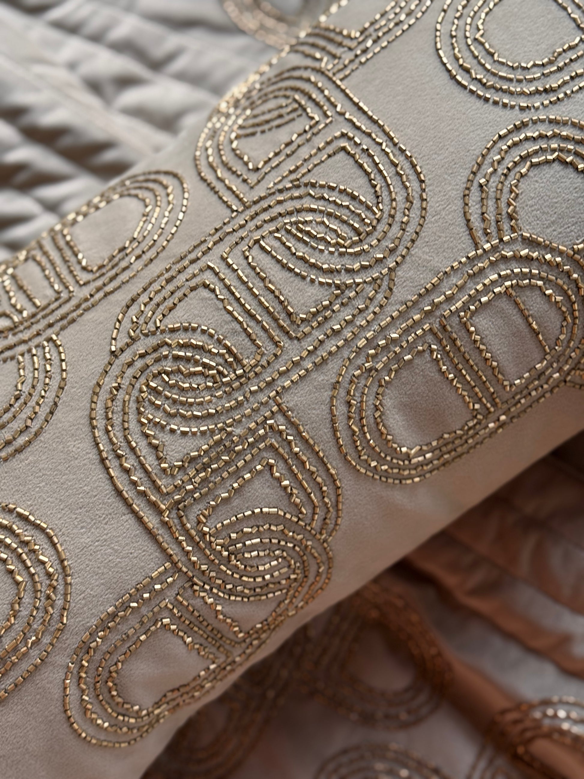 The Gold Suede Ethereal Lumbar combines sumptuous suede craftsmanship with intricate hand embroidery, creating an understated yet striking focal point for any interior. This lumbar pillow elevates seating arrangements with its luxurious texture and refined detailing, offering both visual sophistication and tactile comfort. The included insert ensures optimal support and shape retention. Perfect for those who appreciate curated, high-end home accents that speak to discerning taste.