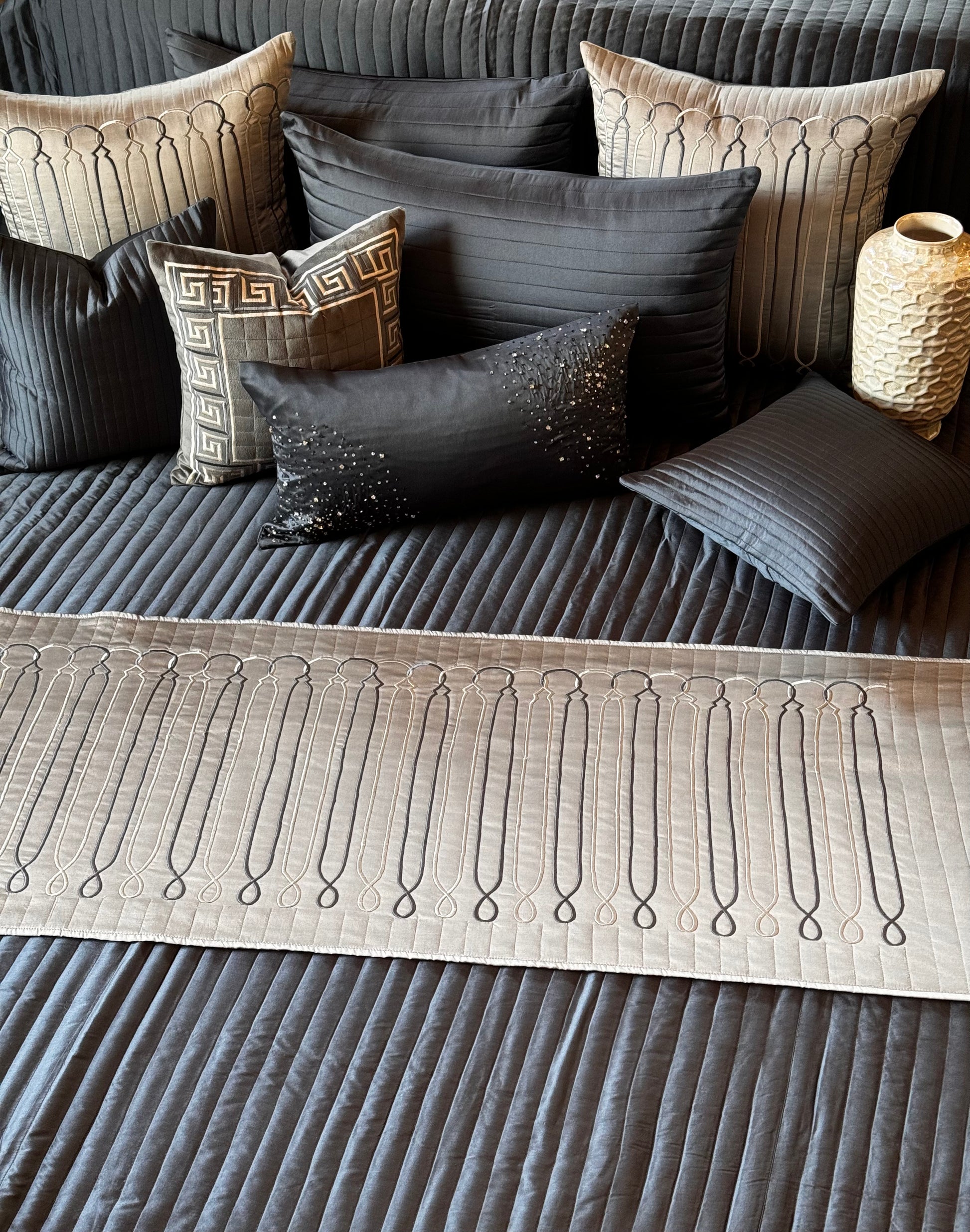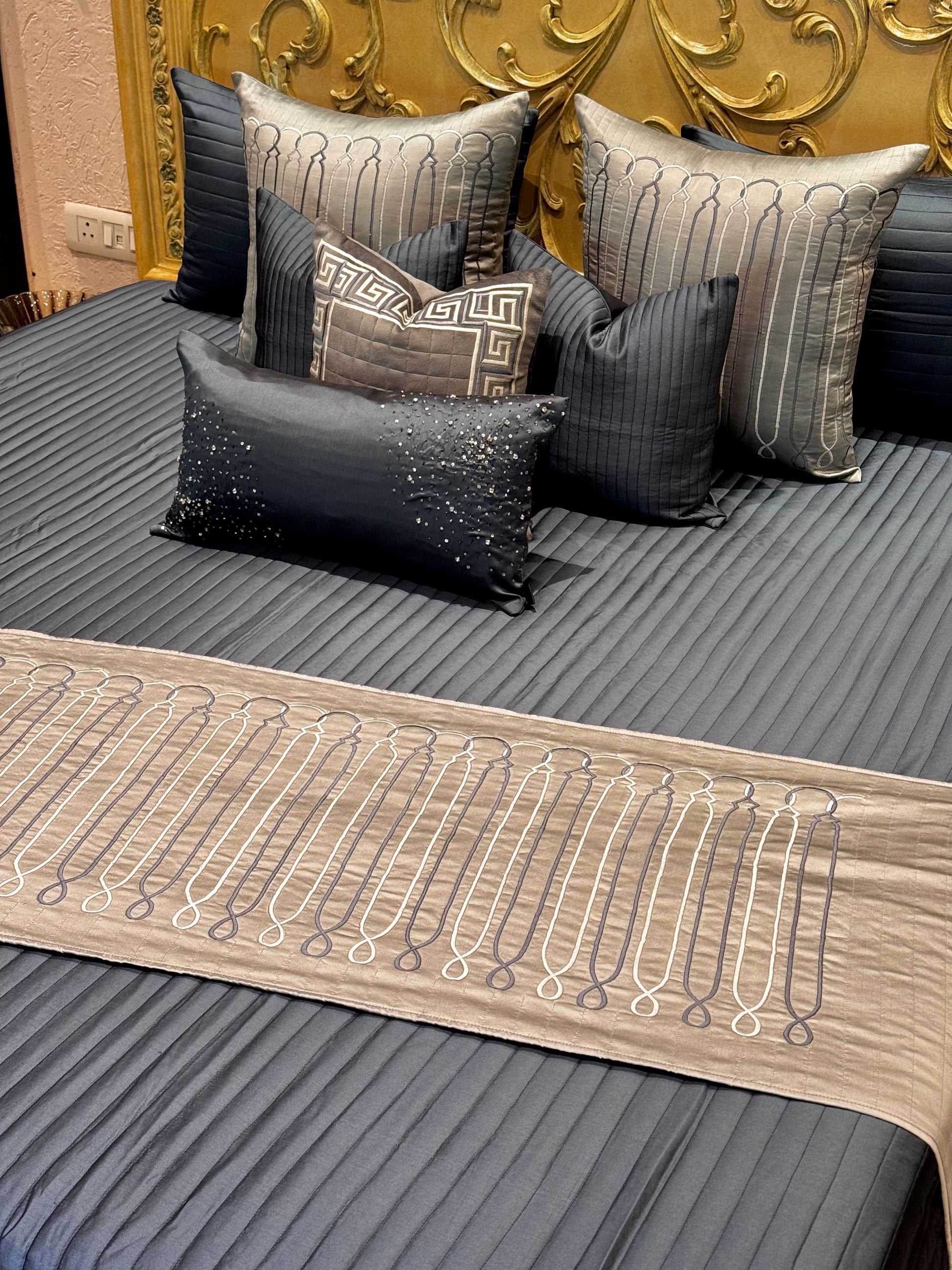 A lavish & elegant bedroom awaits you with our new launch which is perfectly styled for contemporary homes! Topped off with a stunning embroidered bed runner & coordinated shams, this set offers a grand look to your homes!