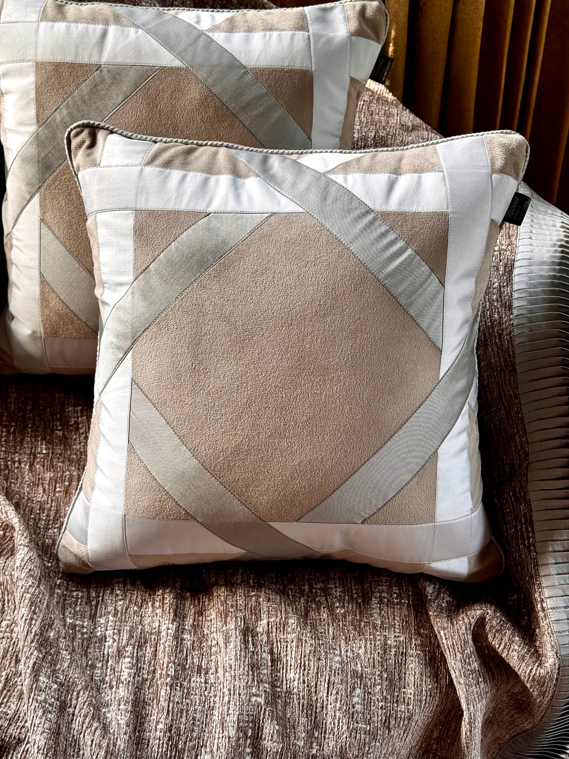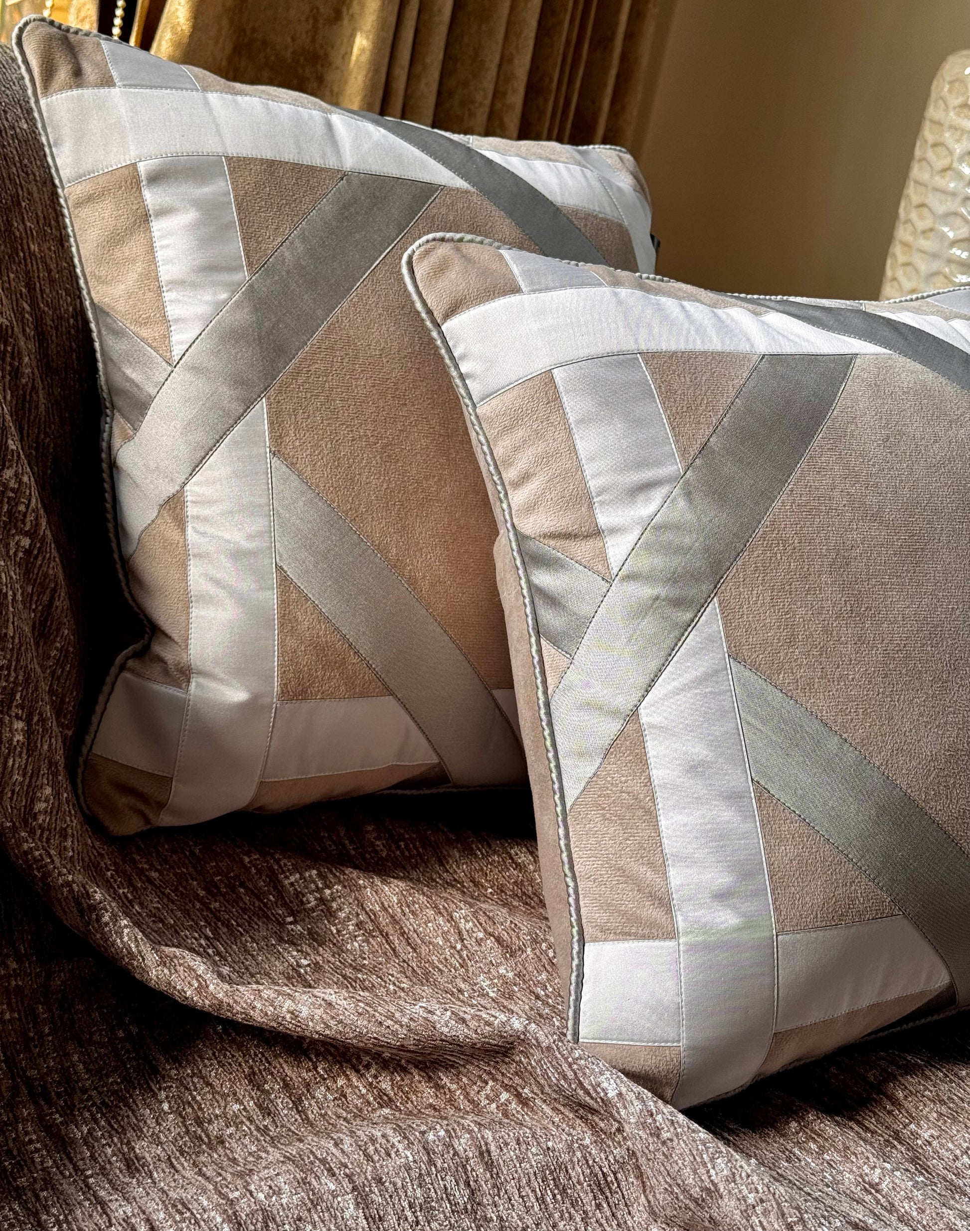Introduce luxury into your home with the Hermes Cushion Cover. This modern and elegant cover features a stylish grey & silver color scheme, adding a touch of sophistication to any room. Elevate your decor with this luxurious cushion cover.