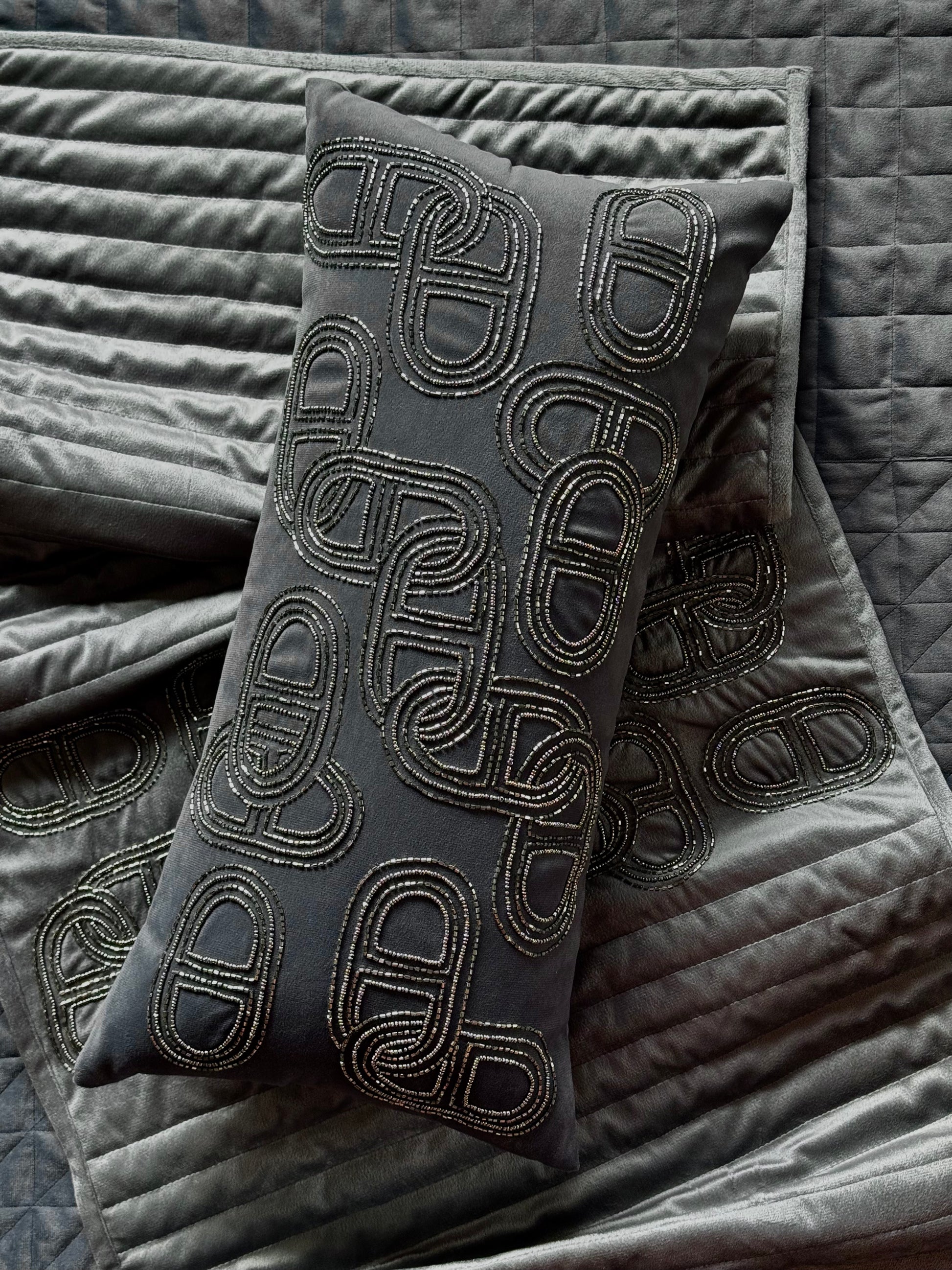 The Grey Suede Ethereal Lumbar combines sumptuous suede craftsmanship with intricate hand embroidery, creating an understated yet striking focal point for any interior. This lumbar pillow elevates seating arrangements with its luxurious texture and refined detailing, offering both visual sophistication and tactile comfort. The included insert ensures optimal support and shape retention — perfect for those who appreciate curated, high-end home accents that speak to discerning taste.