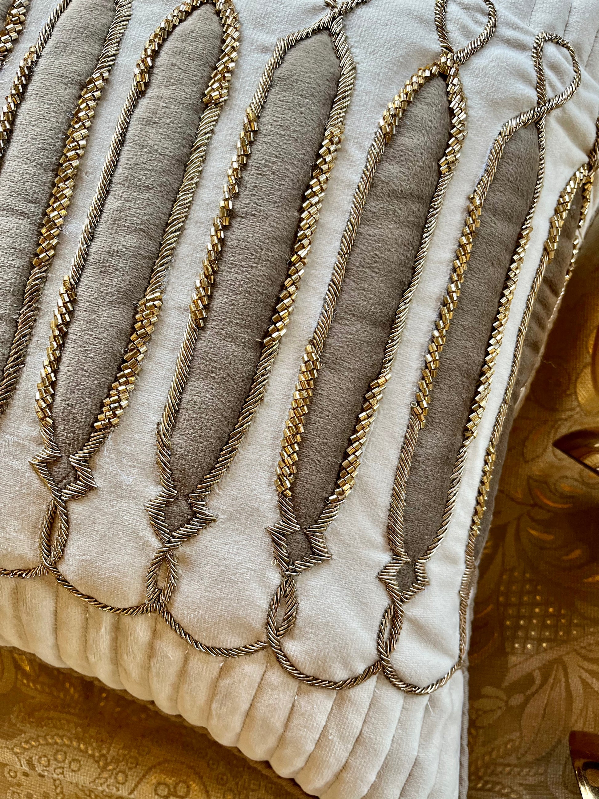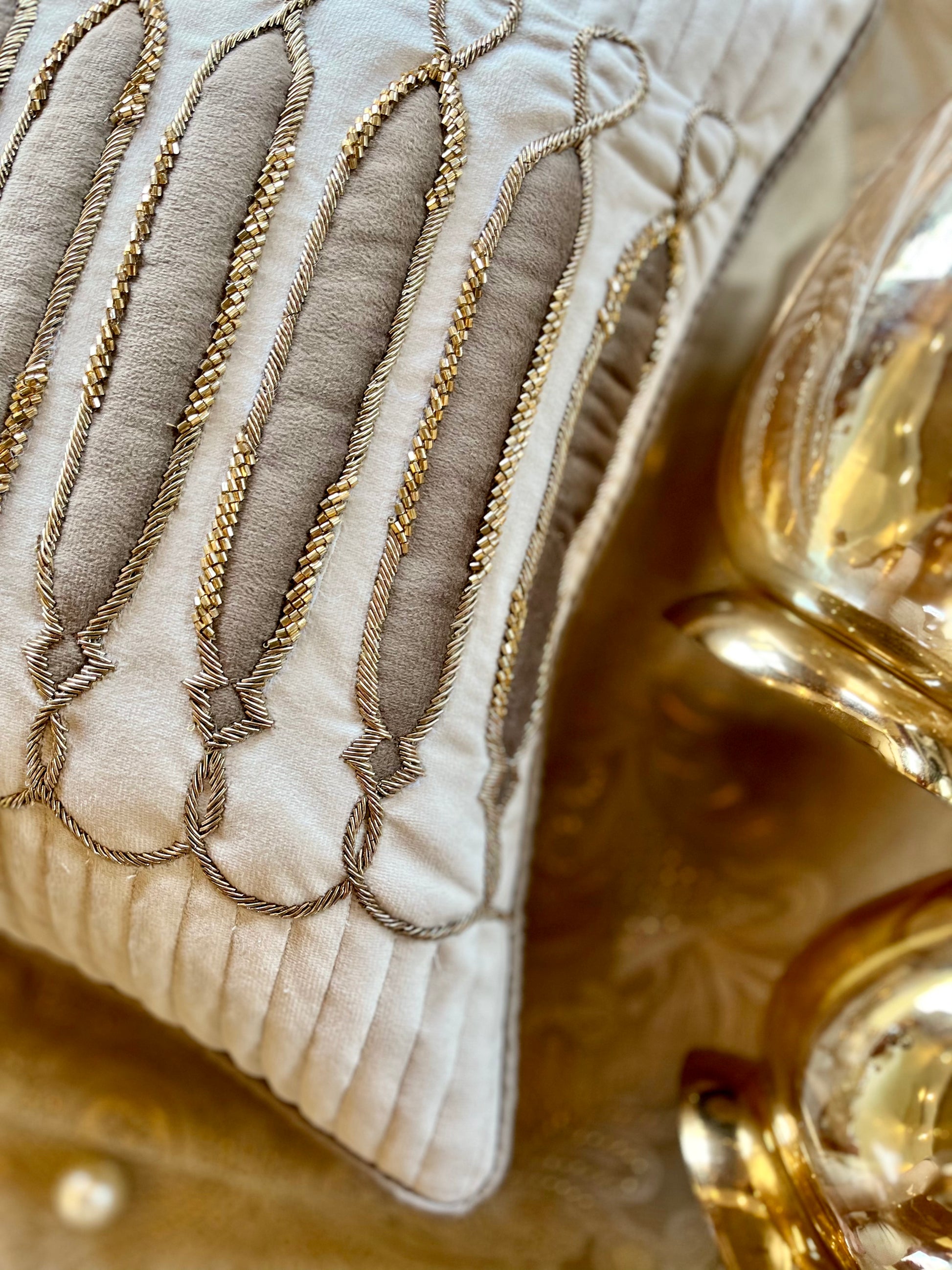 The Louis Cushion Cover features a luxurious suede fabric and intricate hand embroidery for a sophisticated and timeless look. Its durable construction ensures long-lasting use, while the beautiful craftsmanship enhances any space.