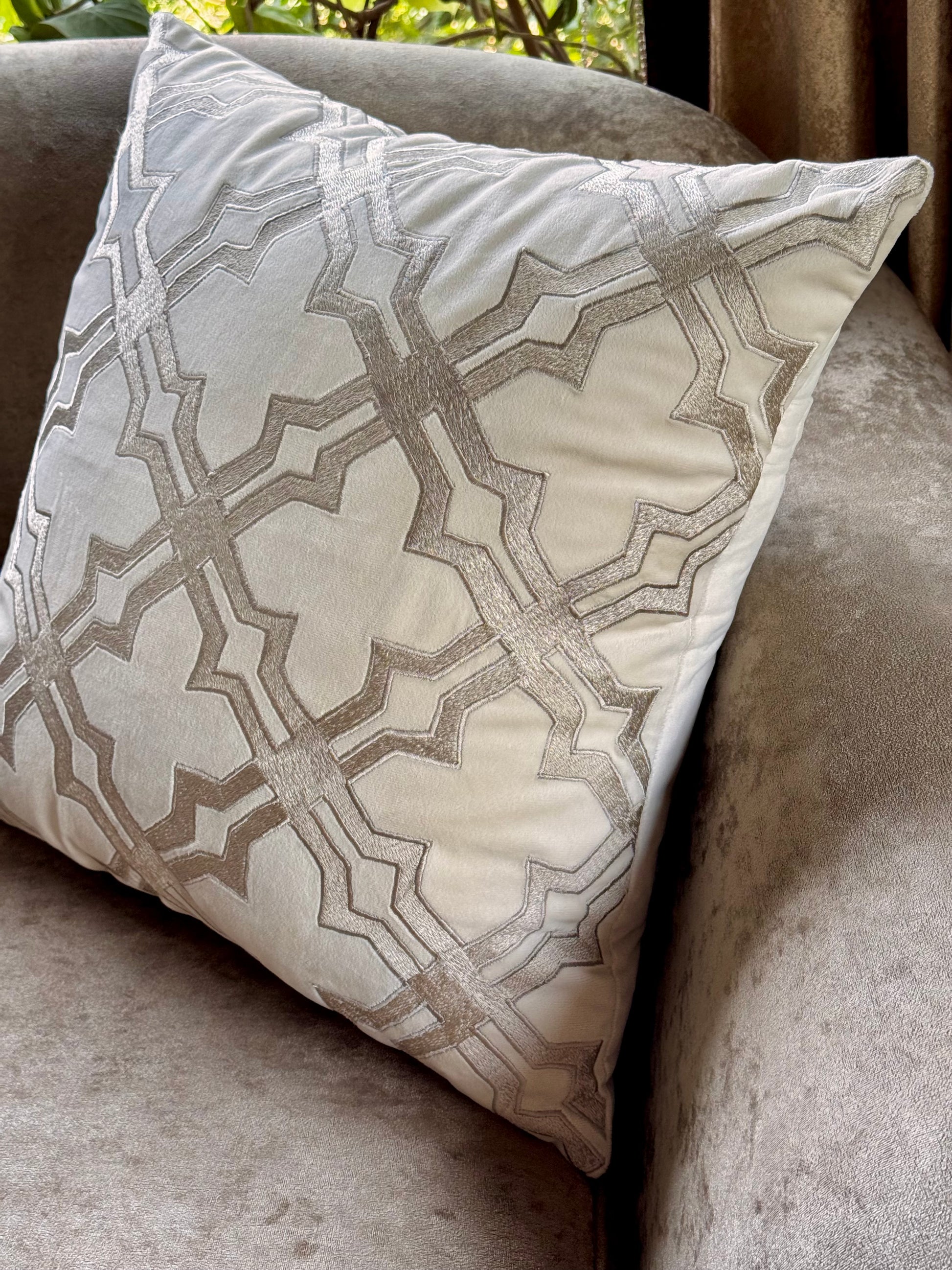 Add timeless elegance to your space with the Off White Star Cushion Cover. Featuring intricate star-inspired embroidery on a luxe off-white base, this piece blends sophistication with subtle charm, perfect for elevating any sofa, chair, or bedding setup.