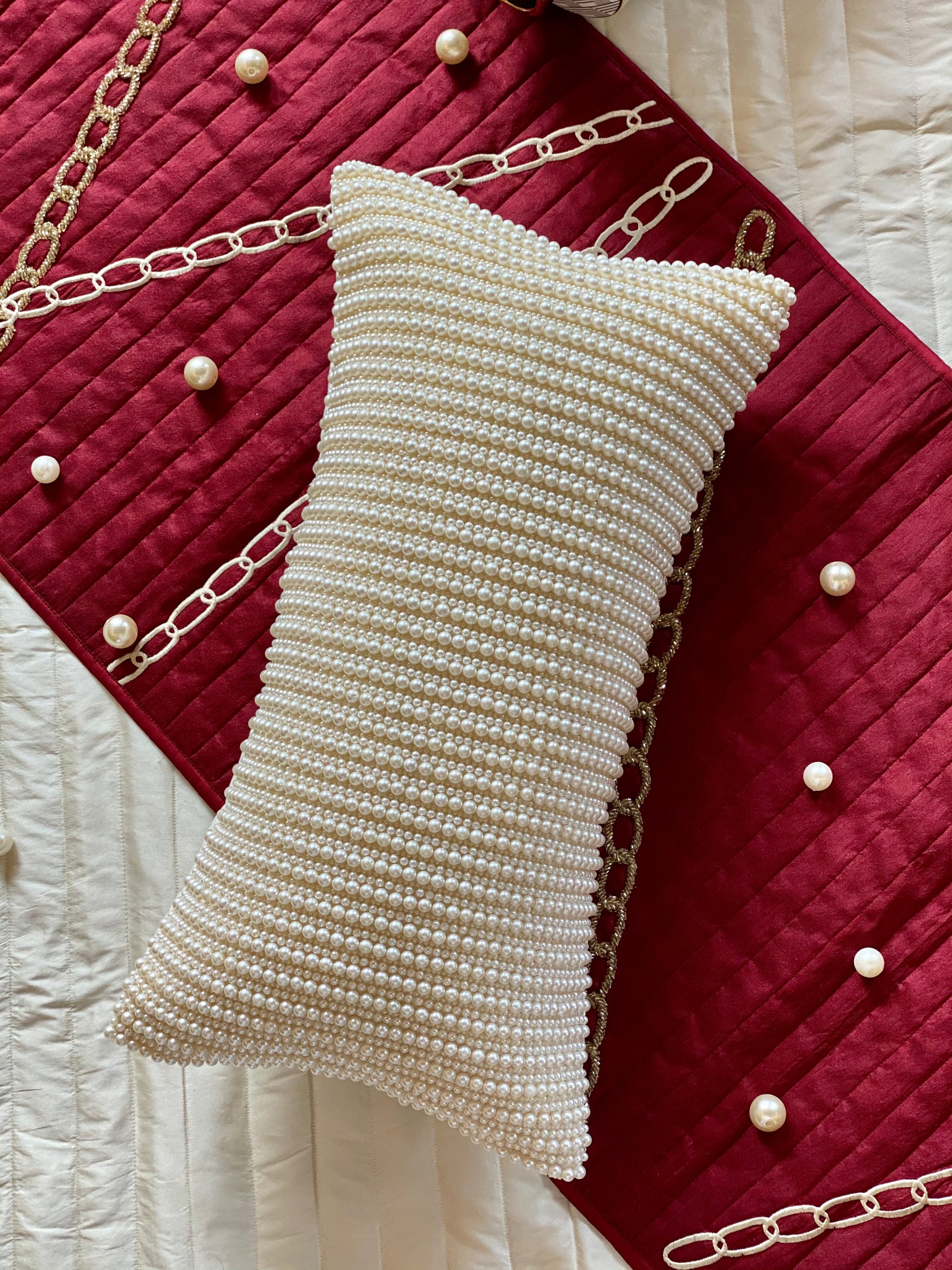 The Pearl Accent Cushion adds a luxurious and elegant touch to any living space. Expertly crafted with pearl handwork, this cushion is perfect for adding a unique decorative element to any home. With its beautifully-designed pattern, the Pearl Accent Cushion is sure to make a statement wherever it is placed.