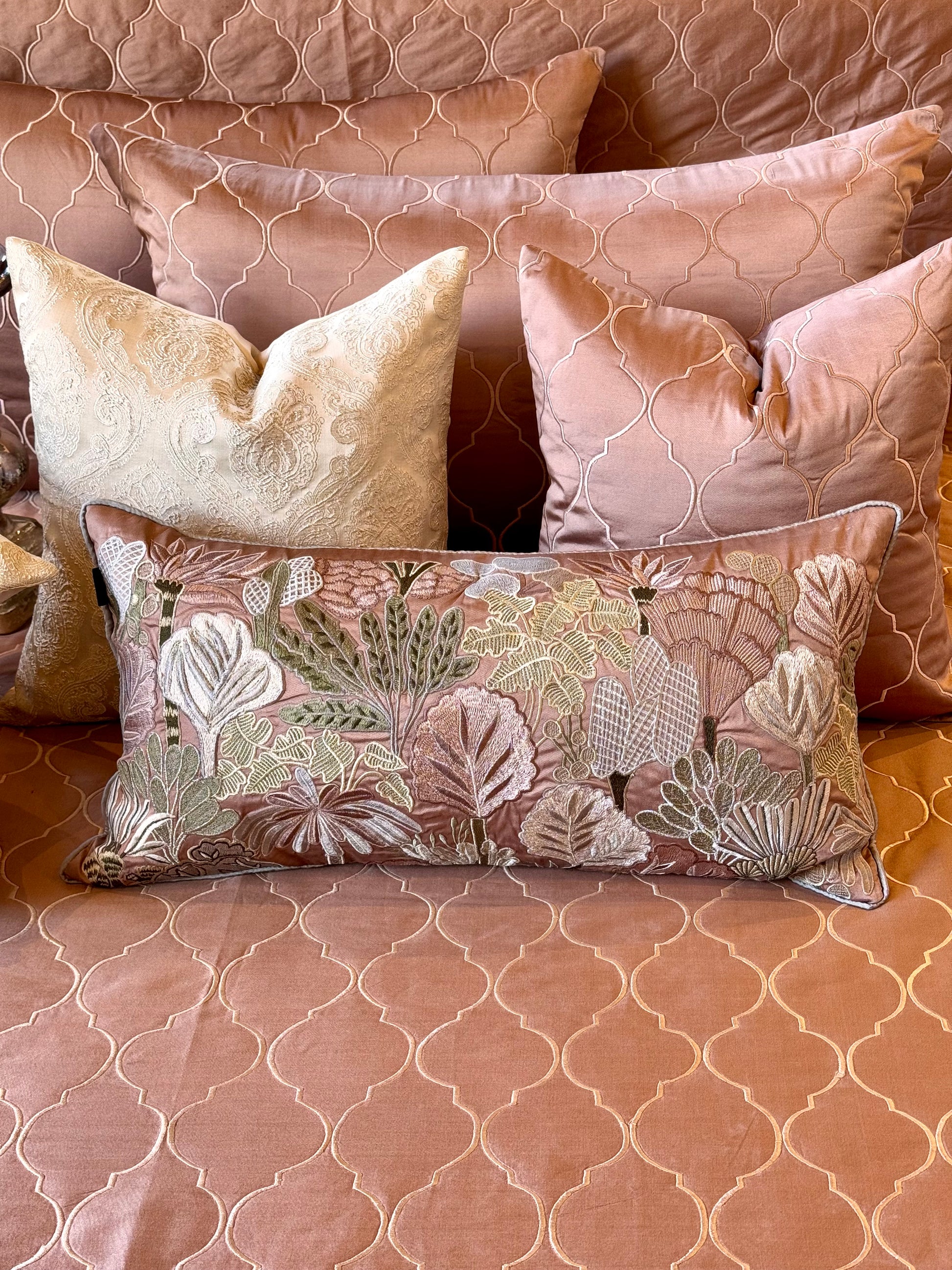 A home that exudes luxury & celebrates timeless beauty of unmatched craftsmanship✨ The pastel paradise is perfect for an exquisite set up! The timeless embroidery all over the bedspread looks elegant as ever when spread!