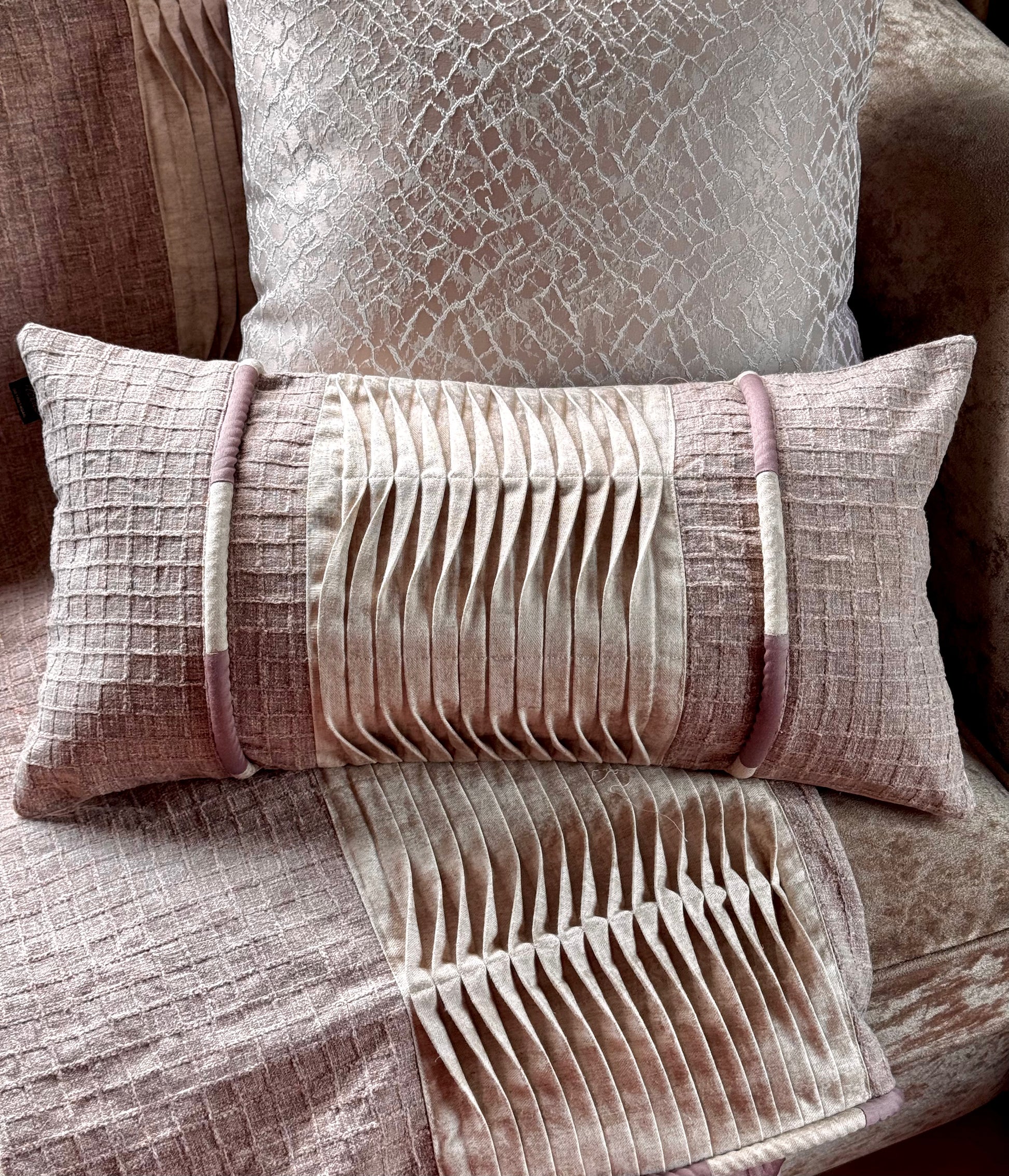 The Plum Waffle Pleated Lumbar combines expert craftsmanship with elegant design to enhance your living space. Featuring a soft, textured waffle pattern and finely tailored pleats, this lumbar pillow offers both style and support. Complete with a high-quality insert, it provides optimal comfort while maintaining its shape. Ideal for adding a sophisticated touch to sofas, chairs, or beds, it balances aesthetics and functionality seamlessly.