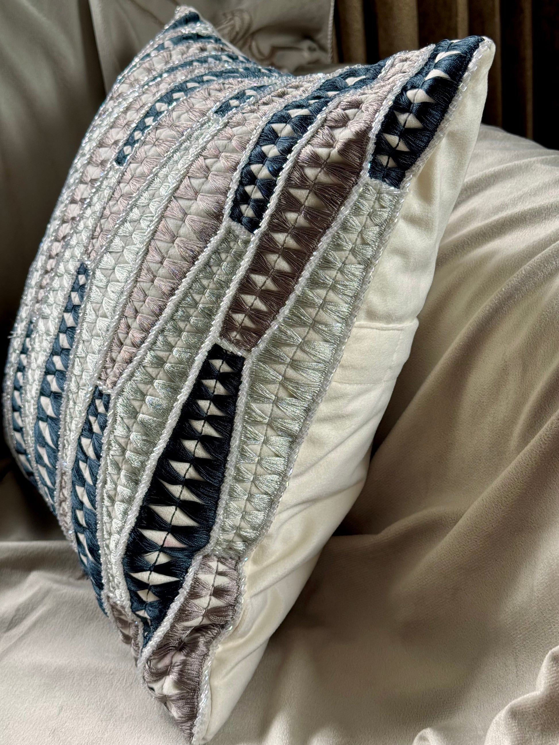 Add a touch of elegance and artistry to your living space with The Sea Blue Azra Cushion Cover. This intricately thread embroidered cover is a perfect addition to any room. Elevate your home decor with a hint of sophistication.