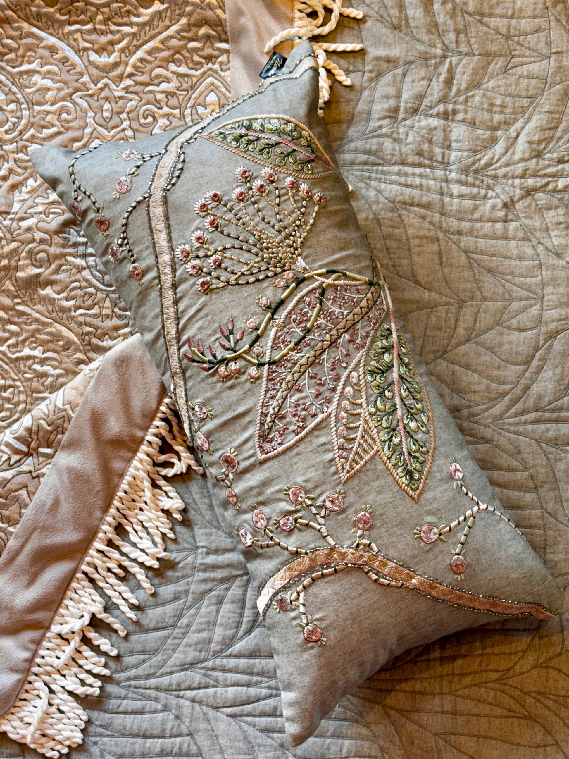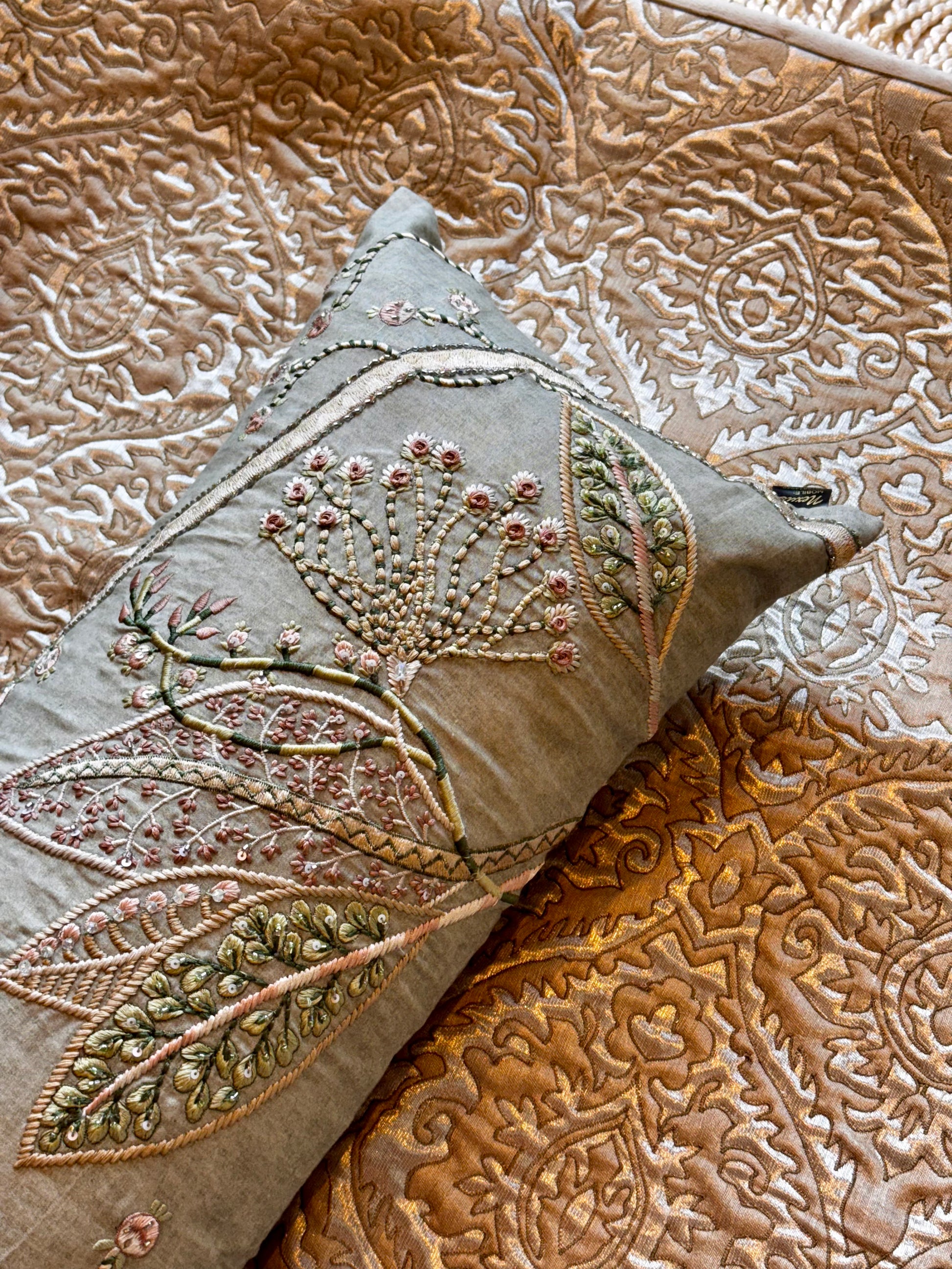 Elevate your home decor with our Summer Green Lumbar. Hand-crafted with exquisite embroidery and a beautiful color palette, this luxurious addition will effortlessly enhance your living space. Get ready to relax in style with our newly launched lumbar, complete with insert for added comfort.