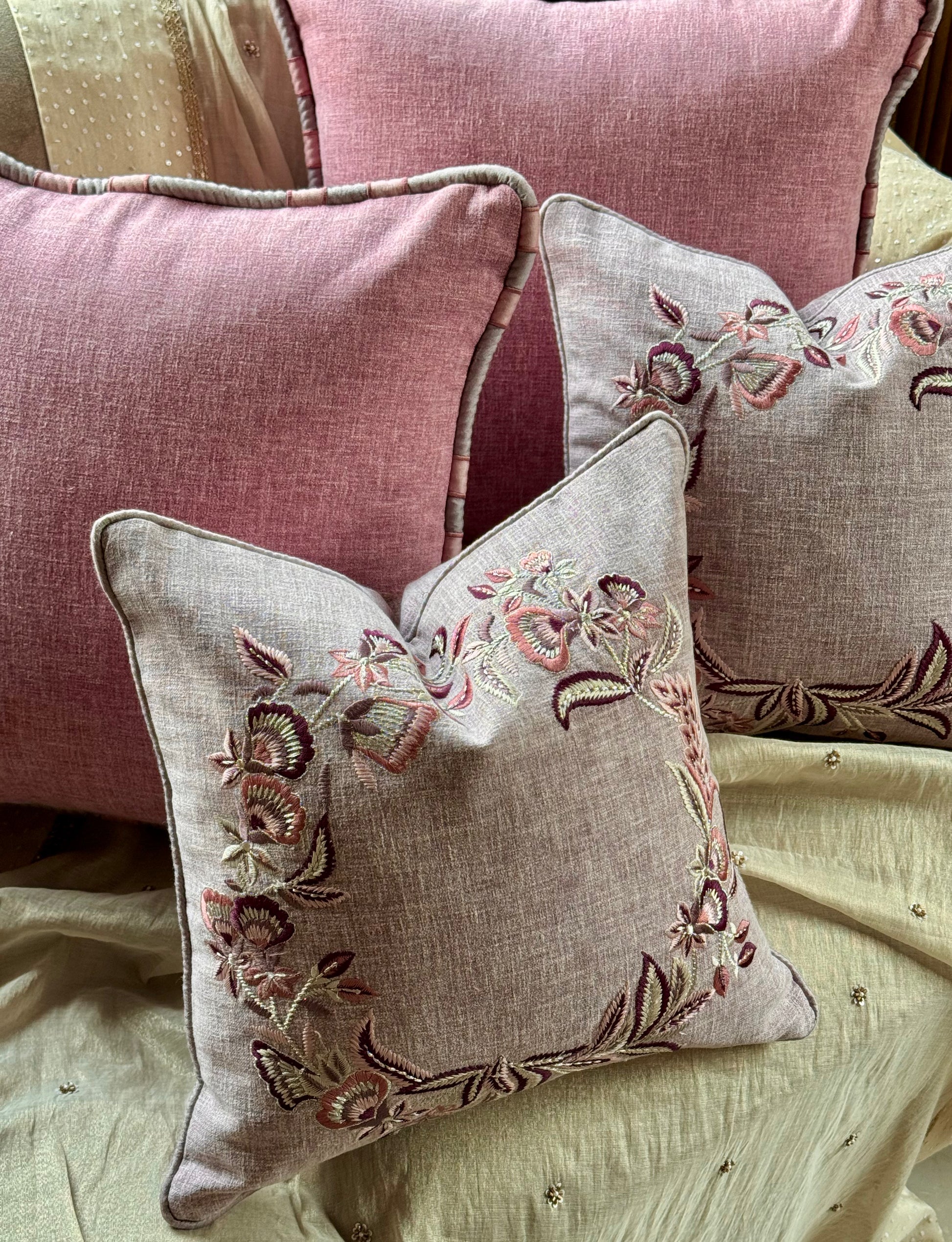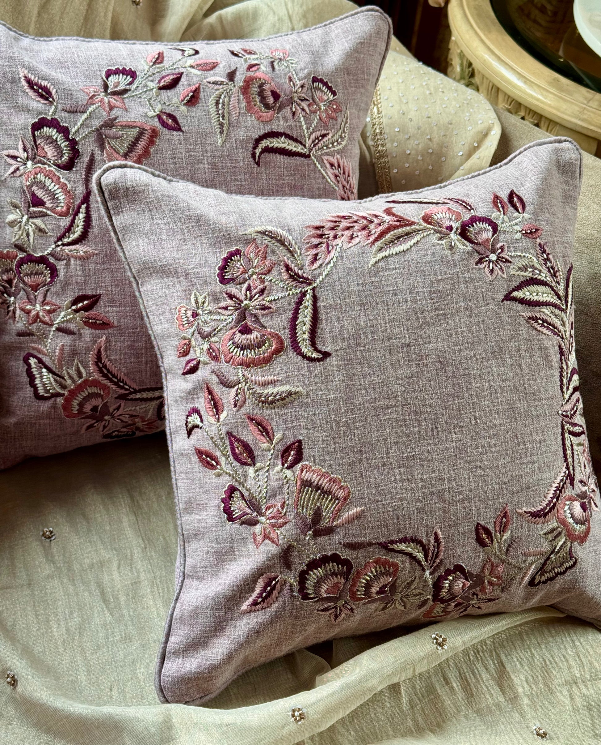 An ode to romantic refinement, The Violet Wreath Cushion features intricate floral embroidery in rich violet and blush tones, gracefully framing a soft neutral base. Delicately detailed yet timeless in appeal, it brings depth, artistry, and cultivated elegance to any setting — a true statement of heirloom-inspired luxury. ✨