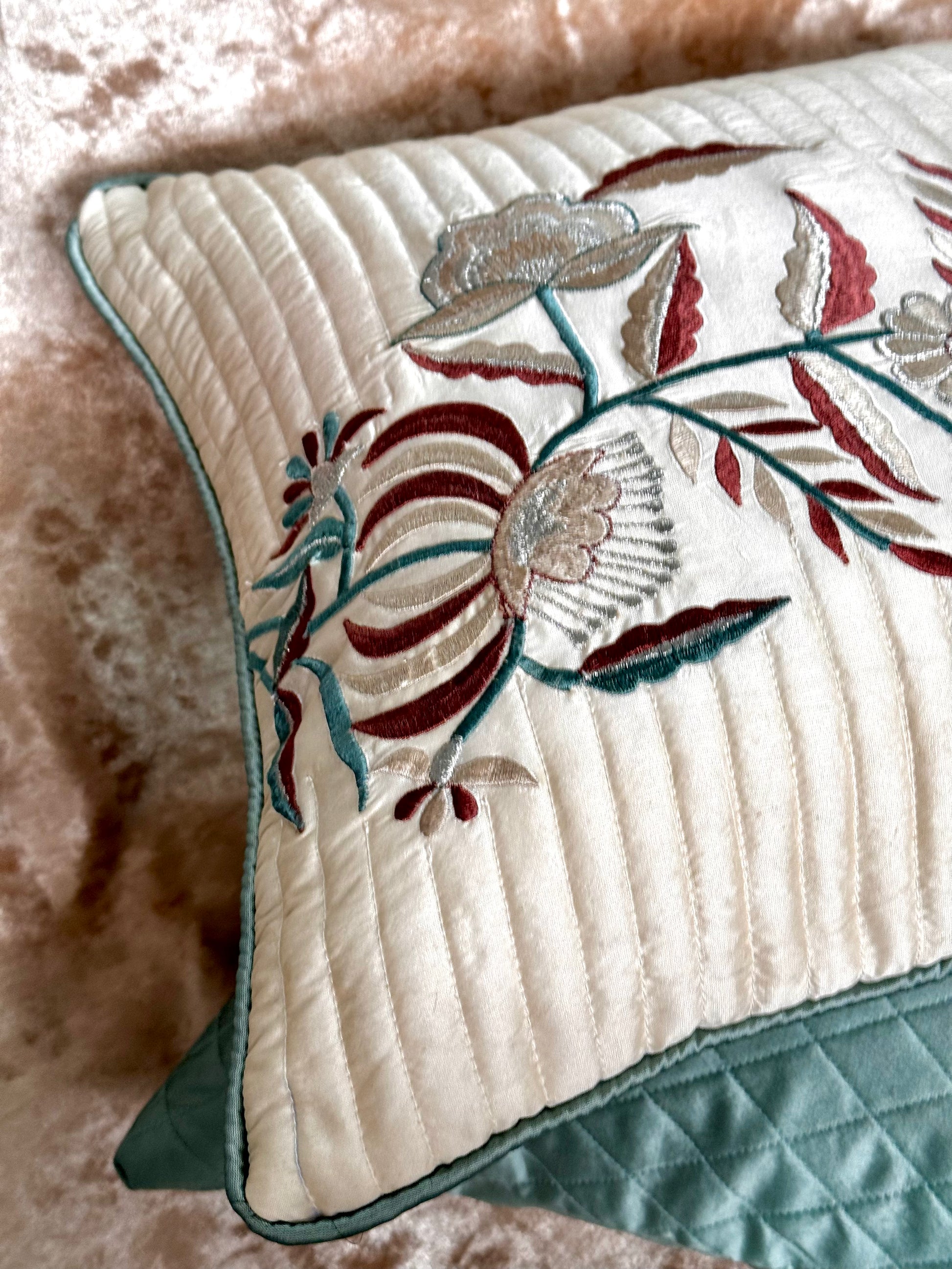 Add a pop of color to your home decor with THE VIVID ORCHID CUSHION COVER. Featuring beautiful and vibrant embroidery, this cover is perfect for creating a bright and lively atmosphere. The linear quilting adds texture and depth to any room. Upgrade your setup and make a statement with this gorgeous accessory.