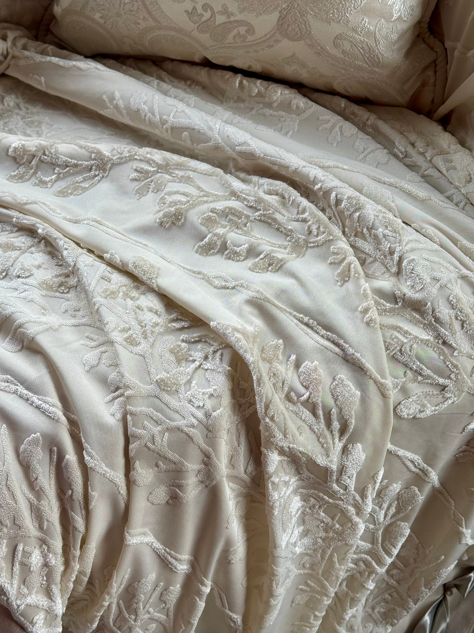 The Pearl Seashell Throw is a statement of quiet luxury, crafted in soft, luminous fabric with delicate tree-inspired motifs. finished with elegant pearl-detailed edges, it drapes beautifully over any setting. timeless, refined, sand effortlessly graceful-designed to add a subtle yet sophisticated charm to your living space.